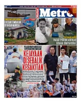 Harian Metro Cover 11/03/2026 2026-03-11Tahniah, JDT lakar sejarah ke suku akhir ACLE Bekalan petroleum dapat bertahan sehingga Mei 2026 - PM 'Saya tak akan pindah atau lari dari kawasan ini' - .. Janda rebah pitam dalam mahkamah selepas mengaku .. Suami pelakon wanita didakwa tipu urusan gelaran .. 'Ramai sangka saya bawa emak' |